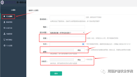 完善个人资料,绑定邮箱和手机号,之后保存即可,特别提醒:一定要绑定邮箱和手机号,忘记密码时能自助找回。