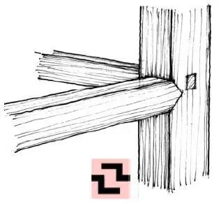 乙1,榫材与卯材(指木纹)是斜角关系,或锐角或钝角,卯眼与榫肩均非90°连接;另有榫材与卯材虽垂直,但卯材扯转斜肩的榫卯连接。